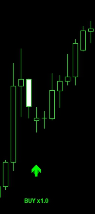 緑の上矢印 + 「BUY x2.3」 → 買いシグナル。x2.3は共振倍率。