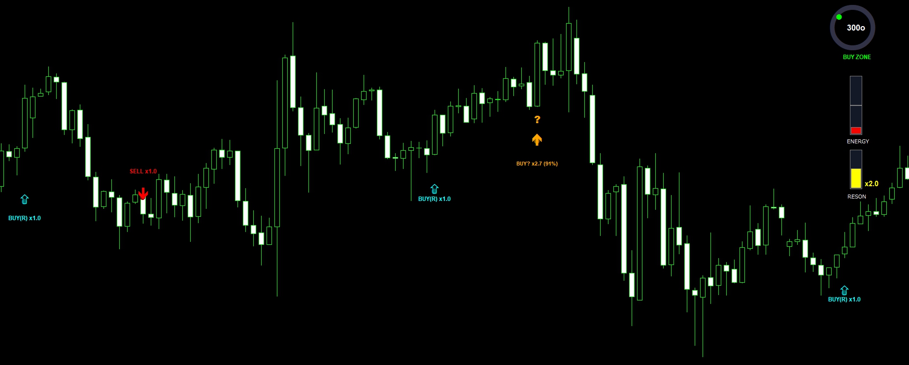 - SUPPORT BOUNCE [BUY ONLY](緑): 支持線で反発。SELLは抑制