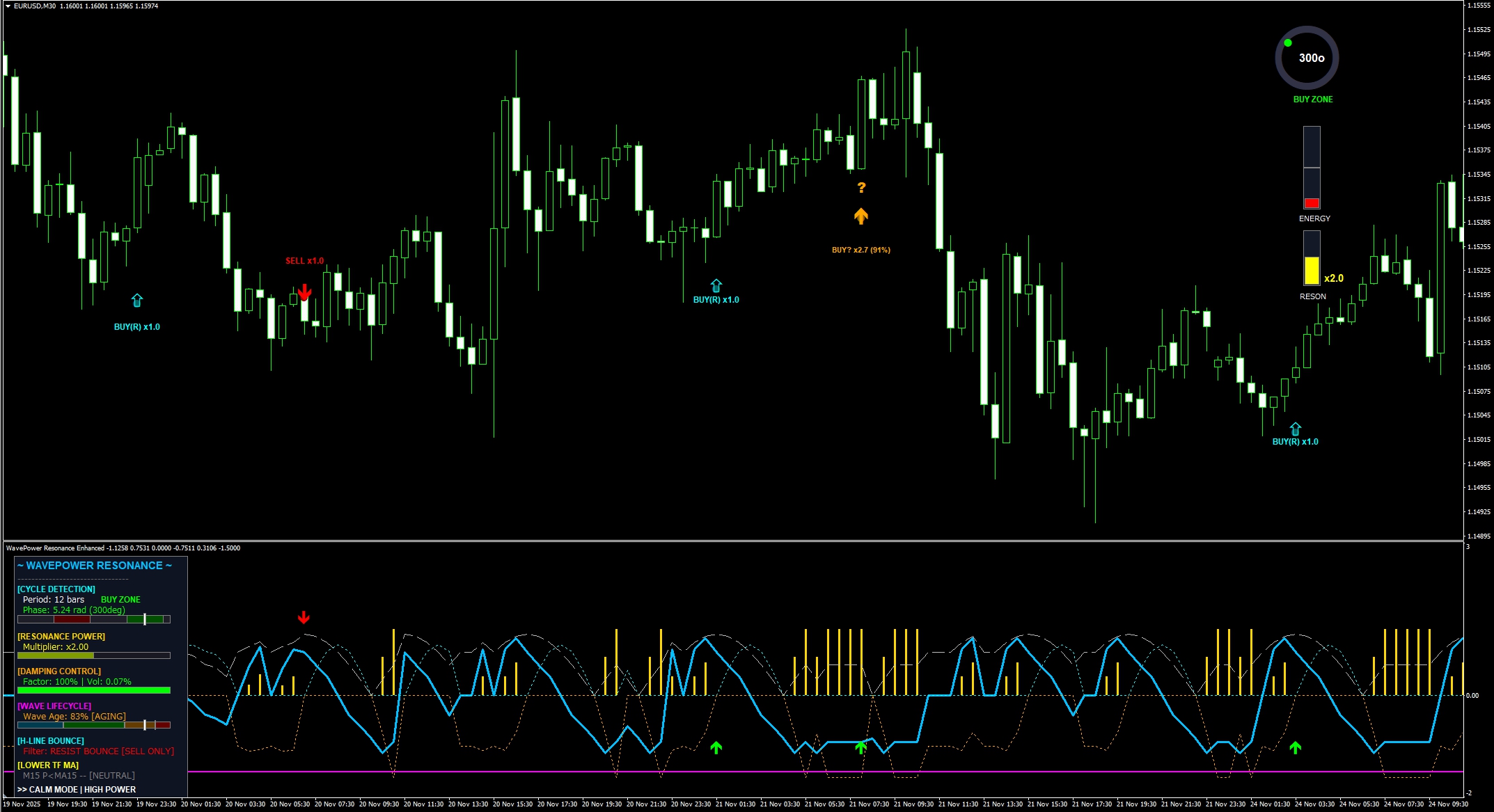 本インジケータ「WavePower Resonance」は、まさにこの発想を相場に持ち込んだものです。