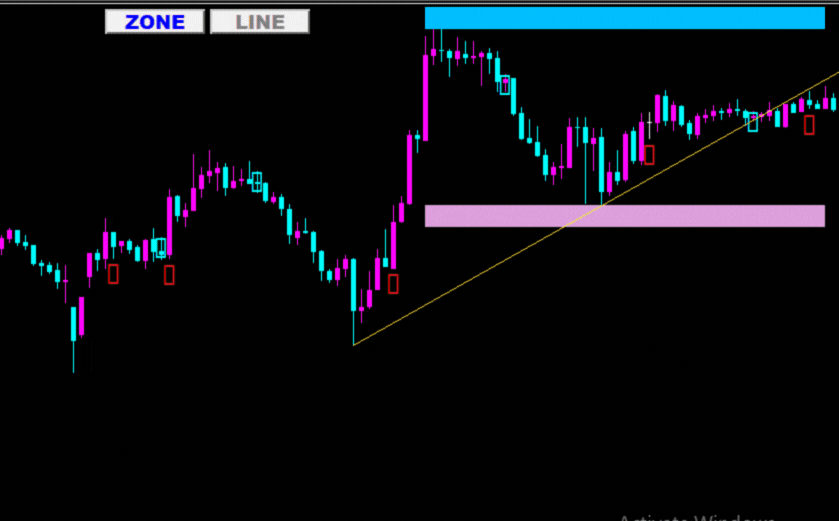 | ボタンでATRゾーンをチャートに描写 | 『ZONE』ボタンクリックでATRゾーンをチャート上に表示・非表示が可能です。 |