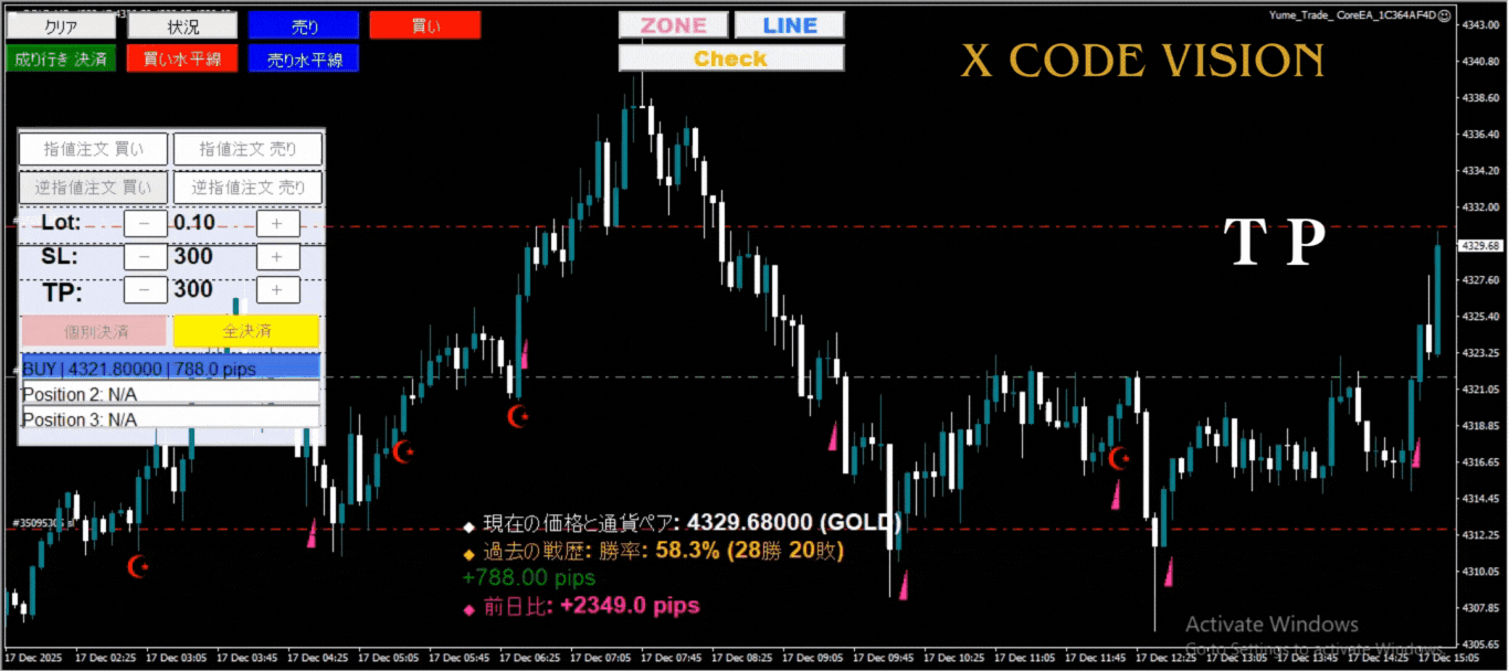 | 2種類の売買ロジックを搭載 | X CODE VISIONとは異なるロジックが組み込まれています。 |