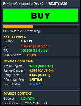 ※Auto Tune中のAIという表記につきまして:3次元グリッドサーチを3段階+SL探知を行い、pips重視のスコアで最適解を探しています。実際には機械学習ではなく、古典的な最適化手法です。AIを使って作った作動機序であり、Intelligent Optimizationです。動作中にヒカリます😉