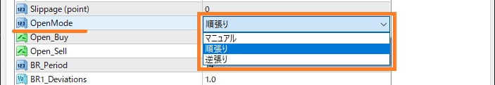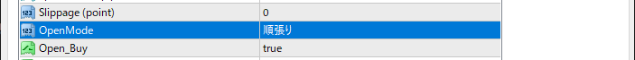 【フルオートでの順張り】 「OpenMode」を「順張り」に設定します。 取得と決済の両方を自動で行うことができます。