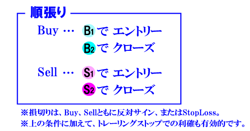 上記の取得・決済条件を基本としていますが、フルオートの場合はその他ダマシ回避や急変時対策などの要素を組み込んでいます。そのためタイミングが異なります。