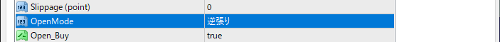 【フルオートでの逆張り】 「OpenMode」を「逆張り」に設定します。 このモードでも取得と決済の両方を自動で行うことができます。