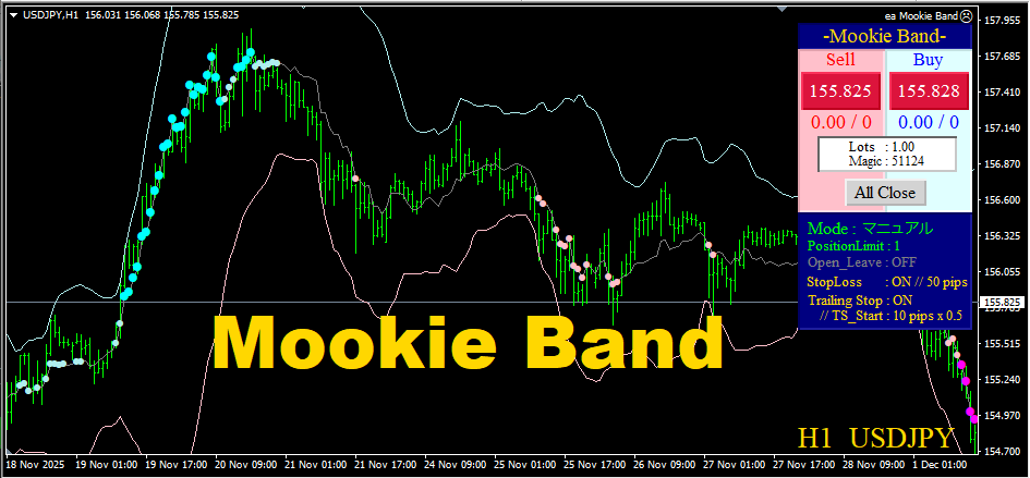 ■『Mookie Band』 のサイン 裁量トレードの場合は次の基準で取得と決済を行います。