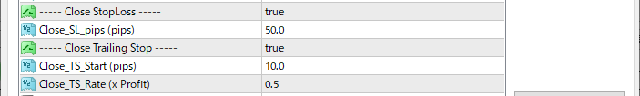 「Close Trailing Stop」を「true」にすると、トレーリングストップ機能が有効になります。 そして、どの地点で発動させるかを、point単位で設定することが可能です。