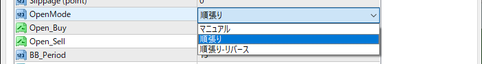 設定は「OpenMode」を「フルオートでの順張り-リバース」に設定します。 このモードでも取得と決済の両方を自動で行うことができます。