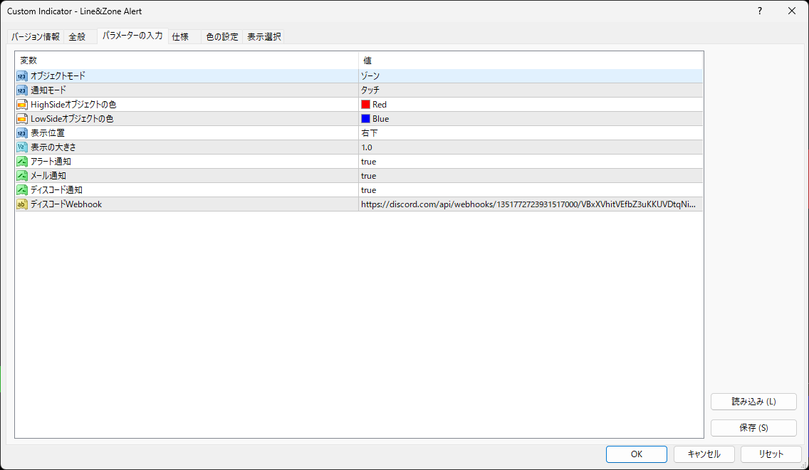 アラート通知・メール通知・Discord通知(チャート画像付き)をパラメータからONOFFできます。