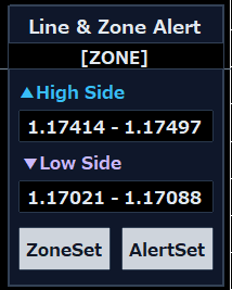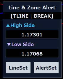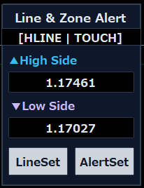 ライン(水平線、トレンドライン)は、以下のいずれかを選択できます。 ・タッチ ・ブレイク いずれの場合も、 判定が行われたラインは点線に変わります。● ゾーンの判定方法