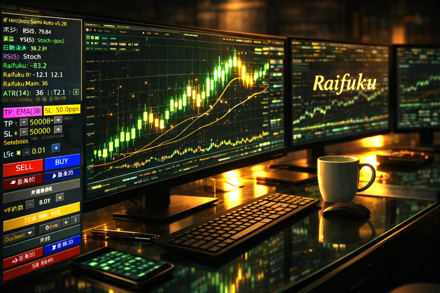 裁量トレードの自由さと、自動決済の規律。 二つの強みを融合させた『来福』システムで、あなたのトレードライフを次のステージへ。