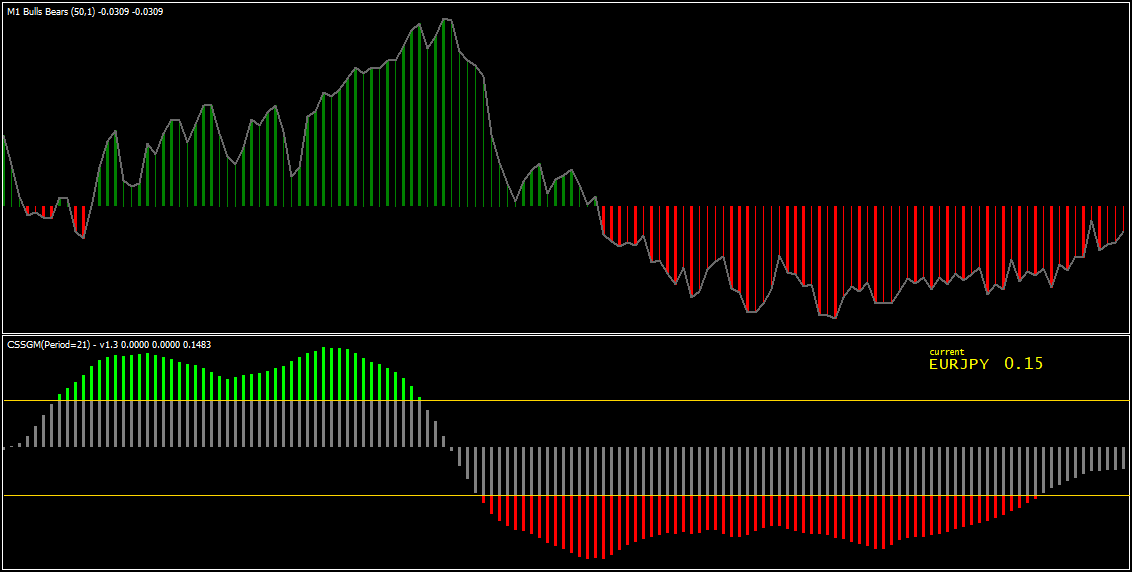 さらに、トレンドの強さや勢いをより正確に分析するため、相場の強さを数値化したものを組み合わせて使用しています。