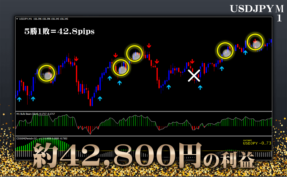 毎回確実に5〜15pipsを積み重ねることが、安定した収益につながります。