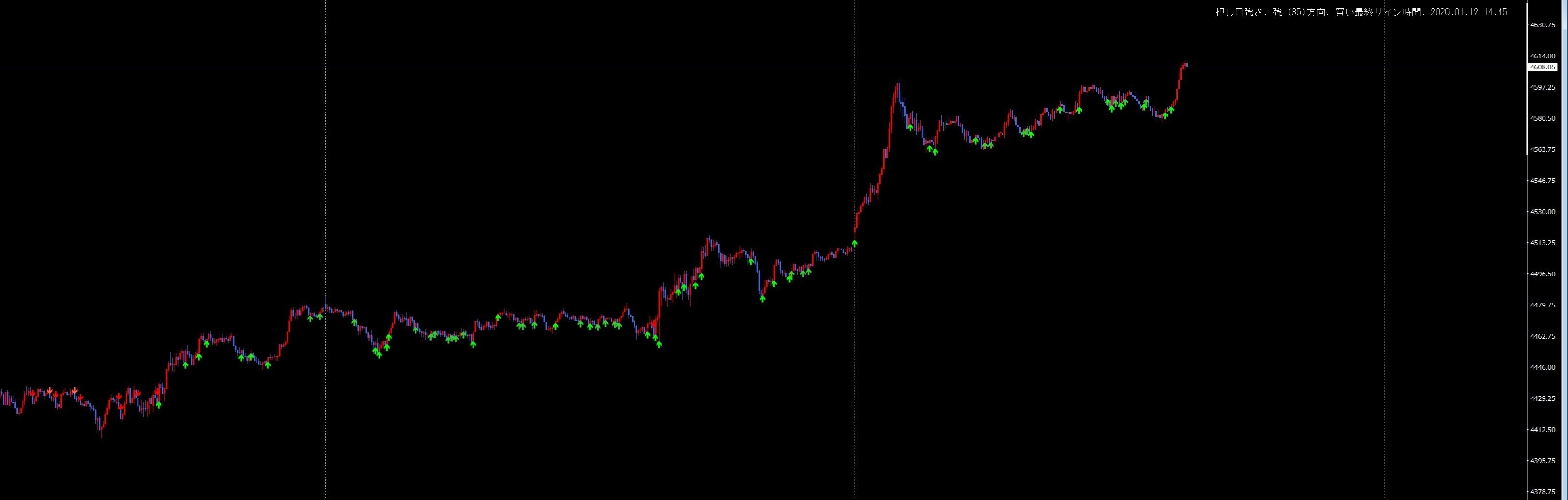 こちらのインジケーターは XAU(ゴールド)専用 として設計されており、5分足での使用を推奨しています。