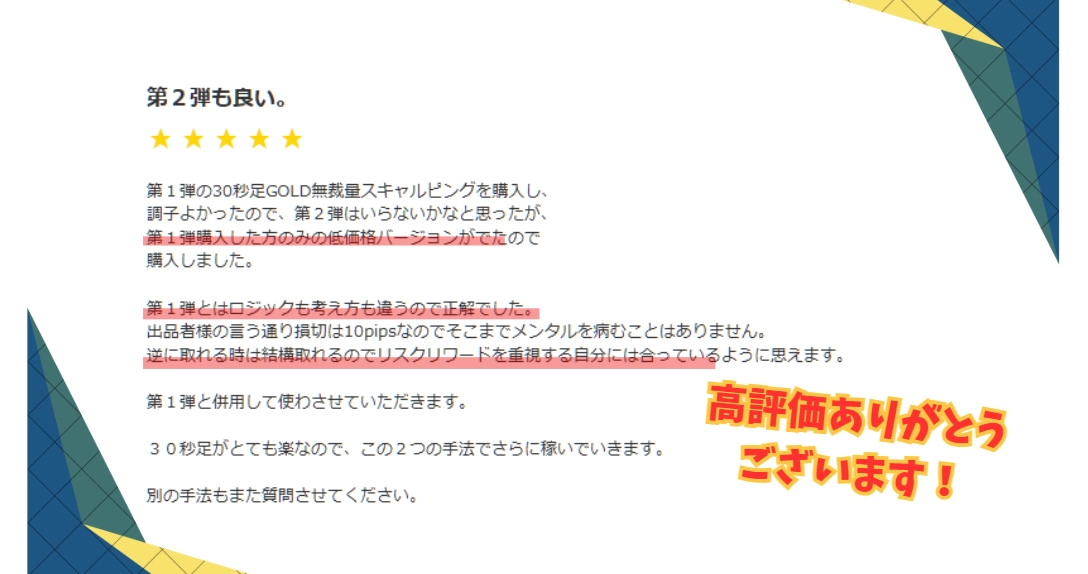 お互いの不得意相場をフォローし合う、30秒足GOLDスキャルピング手法の第1弾+第2弾のセット販売でどんな相場にも対応!