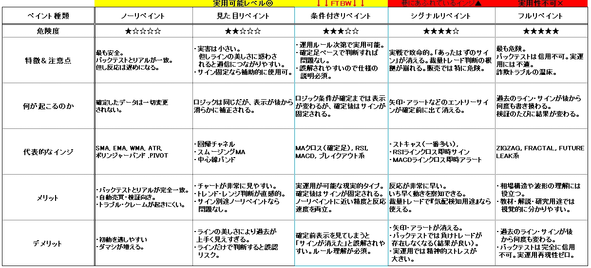【インジケーター選びで失敗しないために-リペイントの種類と“本当の危険度” 】 突然ですが、あなたが使っているインジケーター、「過去の成績、本当に信用できますか?」 多くのトレーダーが知らないまま使っているのが、リペイント問題です。 そもそも、「リペイント」とは? インジケーターが、後から過去の表示やサインを変更してしまう現象のこと。 この性質を知らないと ☑バックテストでは勝てる
