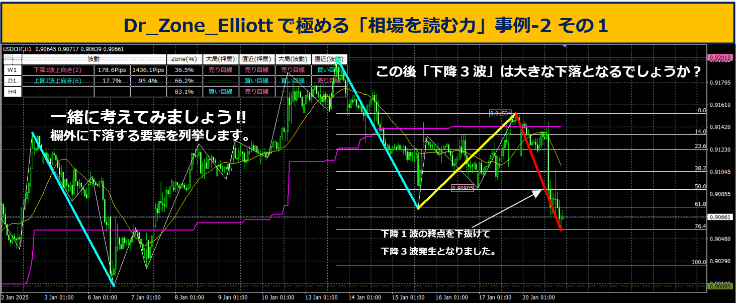 ▼この後の相場予測(H1の下降3波は大きく下落するか?)