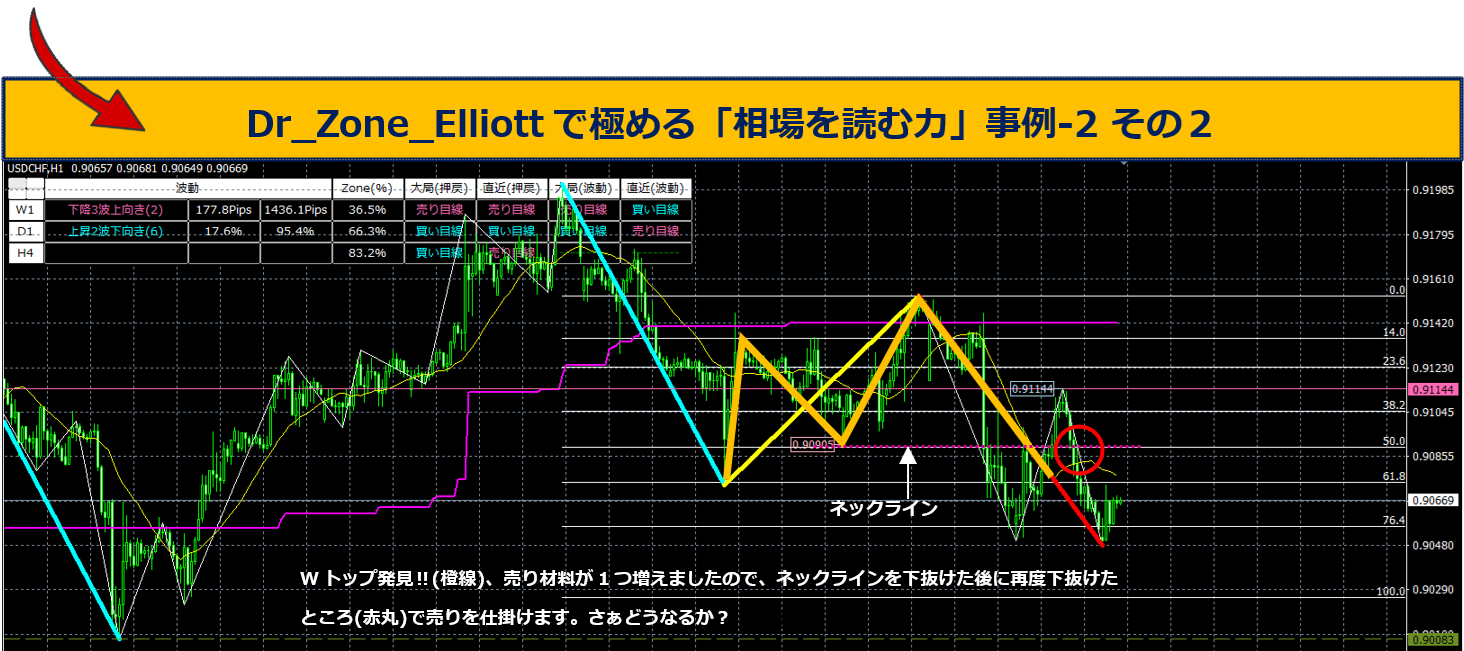 ②D1は上昇2波なので、上昇波動の中の下降波で、直近の波動は売り目線である。