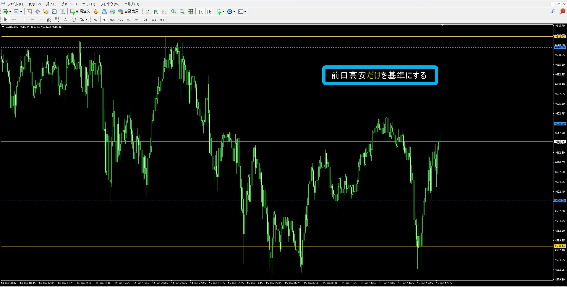 前日高値・安値と反応しやすいキリ番価格を基準に、
