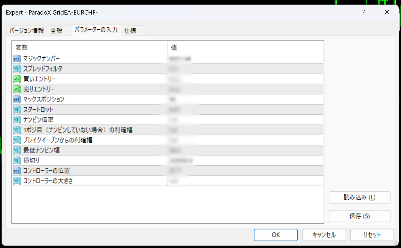 Q.パラメーターの推奨設定は教えてくれますか? A.自動運用モードで設定した数値はデフォルトの初期値として設定されております。また購入後のマニュアルにも記載がございます。 Q. 口座数の制限はありますか? A. 口座数に上限はなく、複数口座での同時運用が可能です。また口座ごとのWeb認証もございません。 Q. 指標時の停止は必要ですか? A. スプレッドフィルターが稼働しているため、異常なボラティリティ時は自動でエントリーを抑制します。コントロールパネルを使えば、ボタン一つで安全に停止・再開が可能となっております。 Q.具体的な推奨証券会社と資金量の設定を教えてくれますか? A.利用規約の観点から具体的な証券会社のご案内は控えさせていただいております。本ページにある「資金量について」の項目を参照いただき、証拠金維持率の観点でお選びくださいませ。ご不安な点があれば購入前にコミュニティタブからご質問くださいませ。