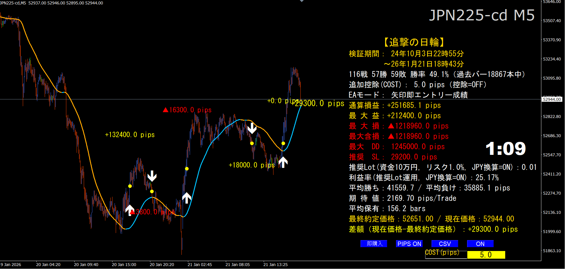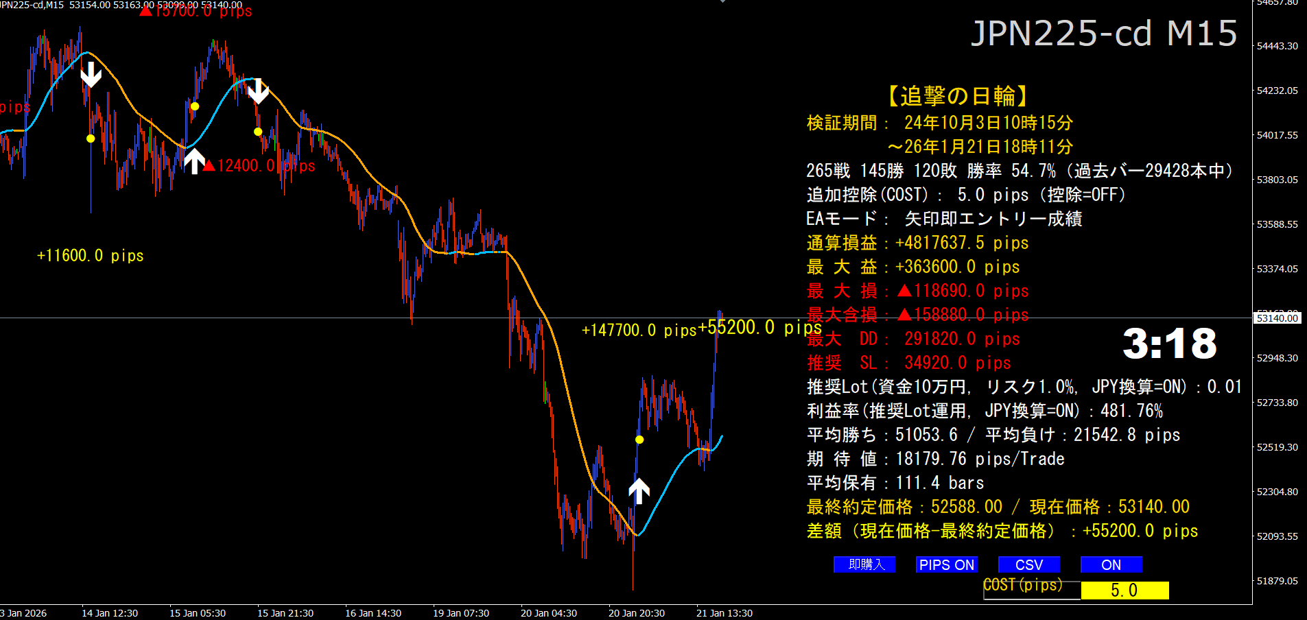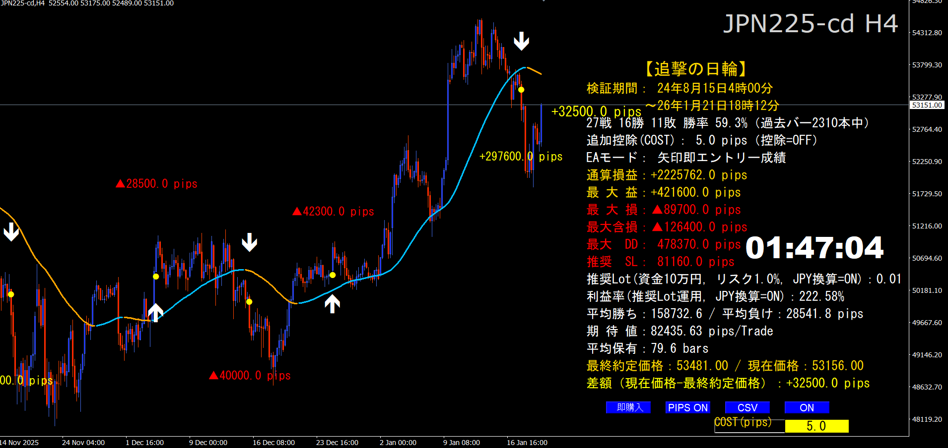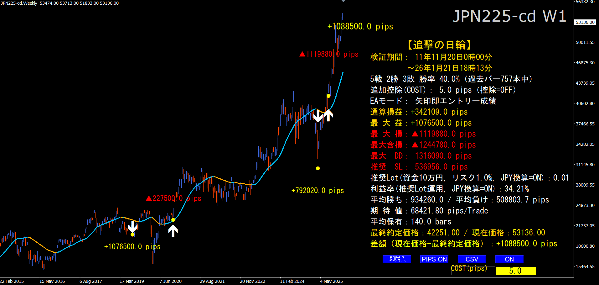 伸びる相場を追撃せよ!【追撃の日輪】★日経225専用★過去とリアル矢印が完全一致★