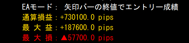 ※ 過去勝率の表示ができる最大本数は、PCの処理能力により異なるため、各自の利用環境によりますが、私の環境では30万本まで表示できました。