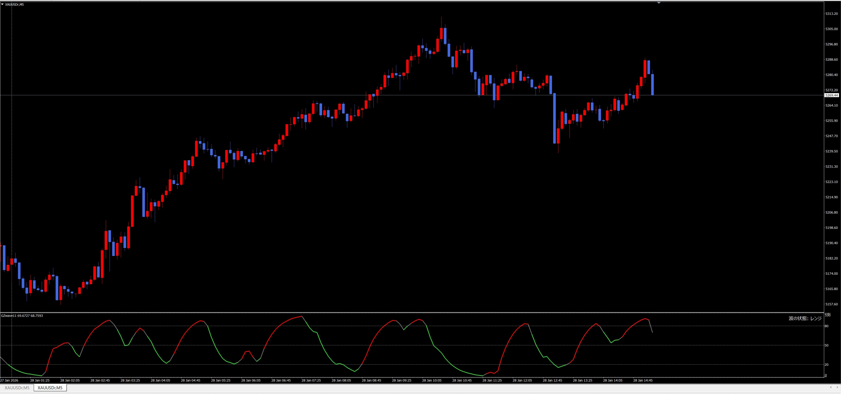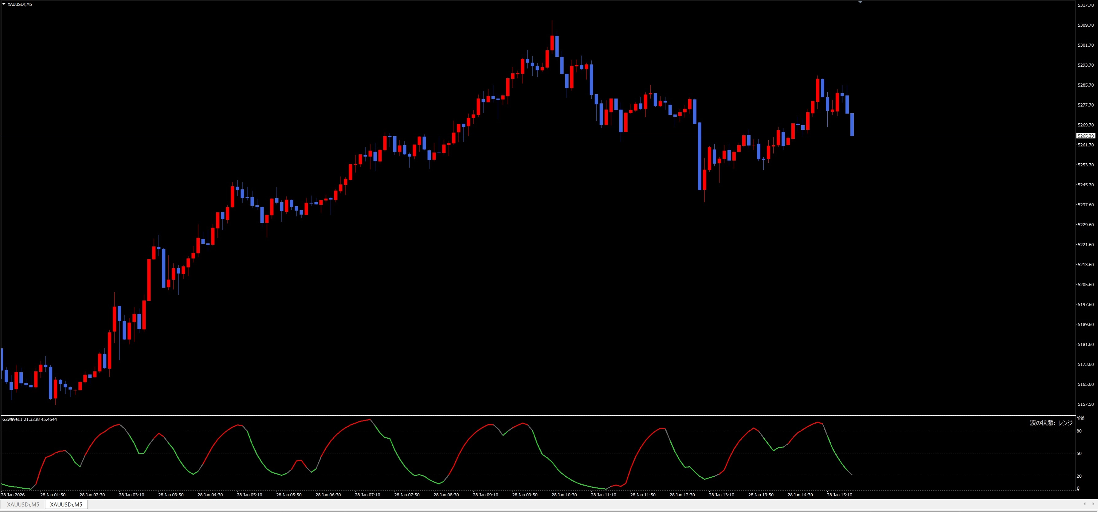 こちらのインジケーターは XAU(ゴールド)専用 として設計されており、5分足での使用を推奨しています。