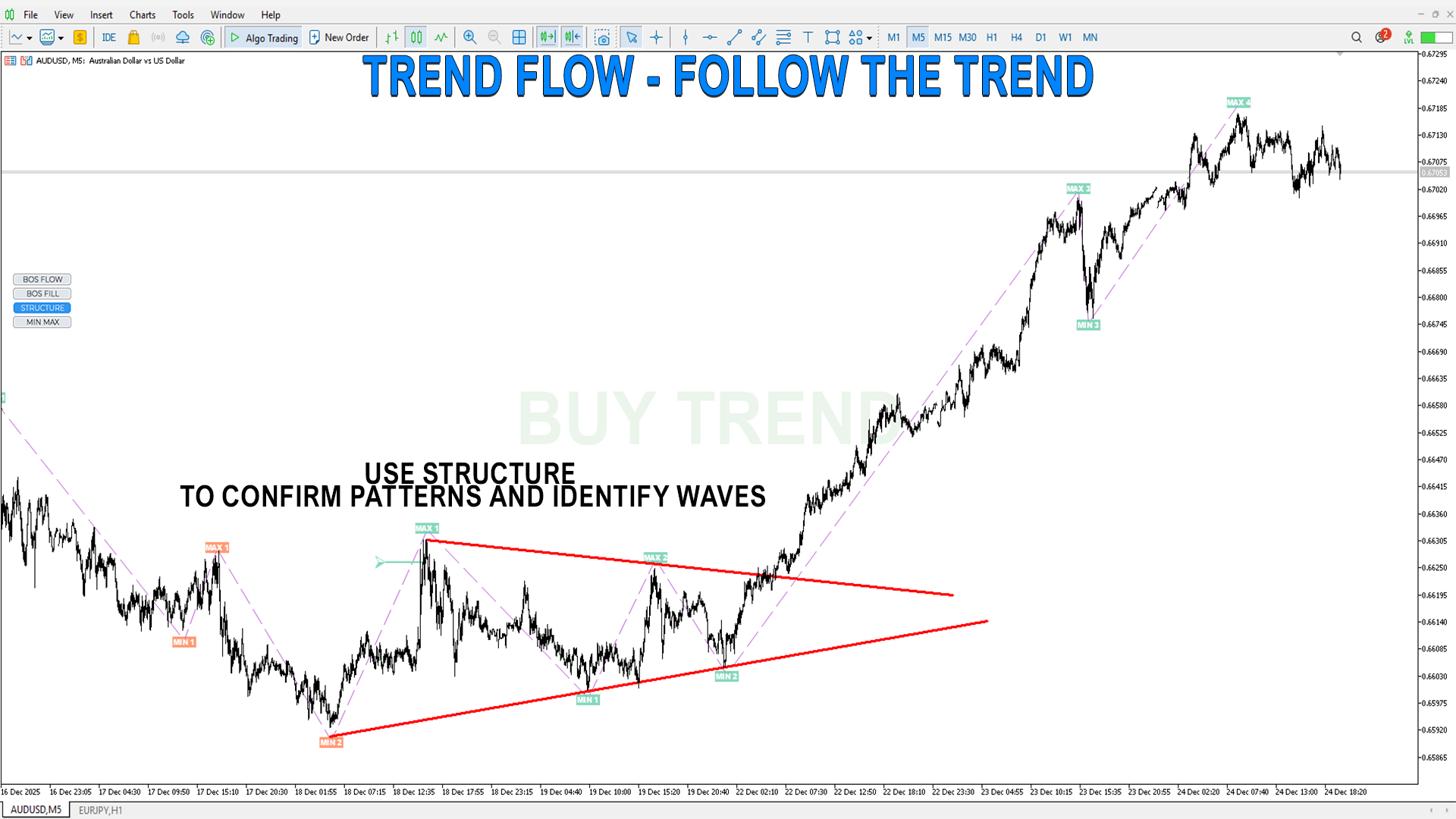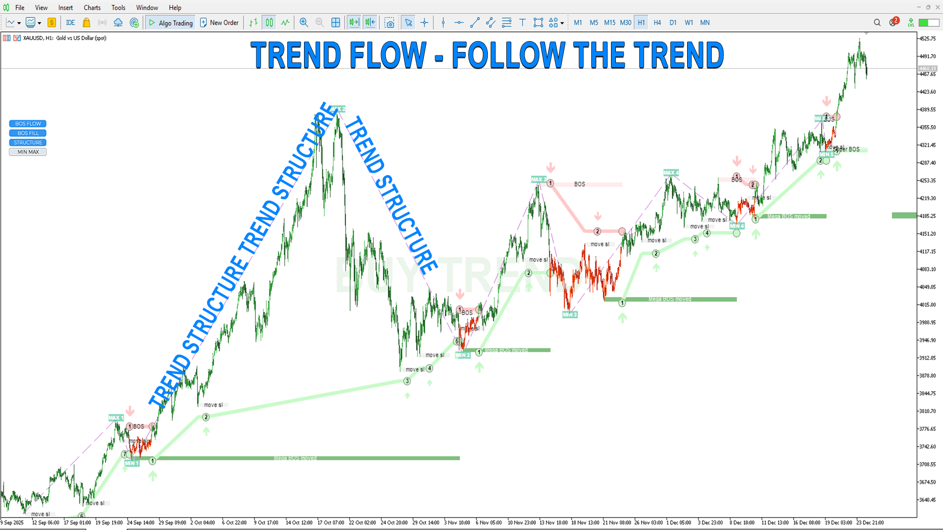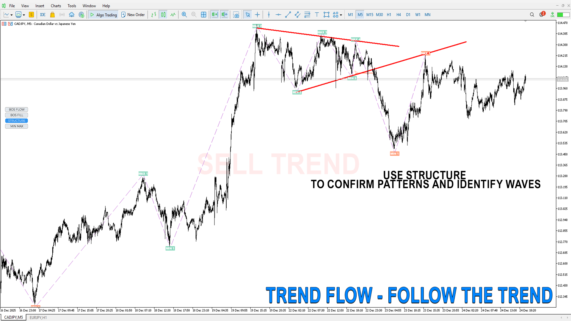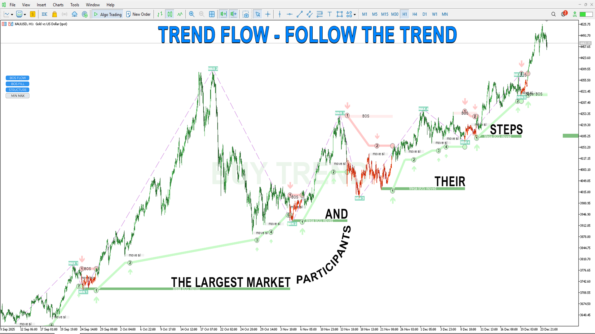 MIN MAX– サブ構造、すべての市場参加者のエントリーをフィルタリングなしで表示し、トレンドの動きを詳述するのに有用です。