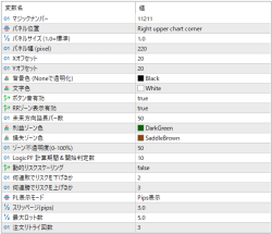 あなたのトレード環境に完璧にフィットするよう、詳細な設定変更が可能です。  パネルサイズ: パネル全体の表示倍率を設定します。 4Kモニターなどの高解像度環境でパネルが小さすぎる場合は、1.5 倍 2.0 倍に設定することで視認性を向上させ、パネルが邪魔で0.8倍や0.5倍等に自由自在に縮小・拡大することができます。 表示のカスタマイズ: パネルの表示位置(右上/左上/右下/左下)の選択はもちろん 、X/Yオフセット調整により数ピクセル単位での配置調整が可能です。 デザイン変更: パネルの背景色や情報文字色を自由に組合せ変更できる為、あなた専用のパネルを設定できます。 透過度変更: RRゾーンの不透明度の調整も可能なため、チャートの視認性を損ないませんパネル非表示: チャート分析に集中したい時は、非表示ボタンをクリックするだけで瞬時にパネルを消し去ることができます。環境設定: ボタンクリック時の効果音の有無や 、RRゾーンの未来方向への延長幅なども好みに合わせて調整できます。   RRゾーン