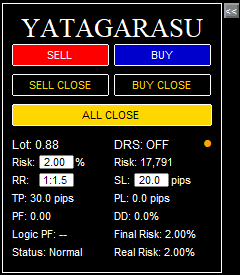 まとめ トレードを繰り返した際、最も怖いのは「一時的な不調による破綻」です。 「好調な時にしっかり稼ぎ、不調な時に資金を守り抜く」 このバランスを、感情を一切排除して実行し続けられることが、Yatagarasuを導入する最大のメリットと言えます。 裁量の自由度はそのままに、プロレベルの資金管理を可能にする。 トレードライフの守護神として是非、八咫烏を迎え入れ新次元のリスク管理を体感してください。