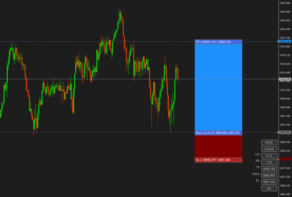 RR値、価格を入力してTP、Entry、SL各ラインを移動させることもできます。