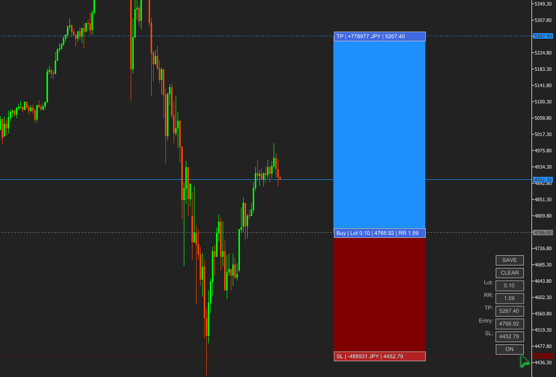 チャート上でロッドを設定しリスクリワードや損益を確認する為のツールです。
