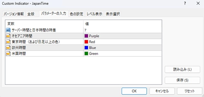東京時間(および日足以上の色) :東京時間および日足以上の色のバーの色を設定