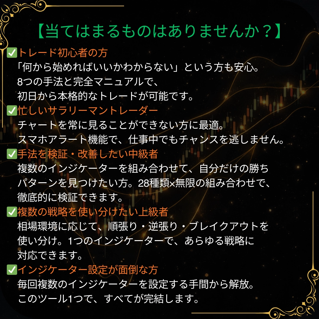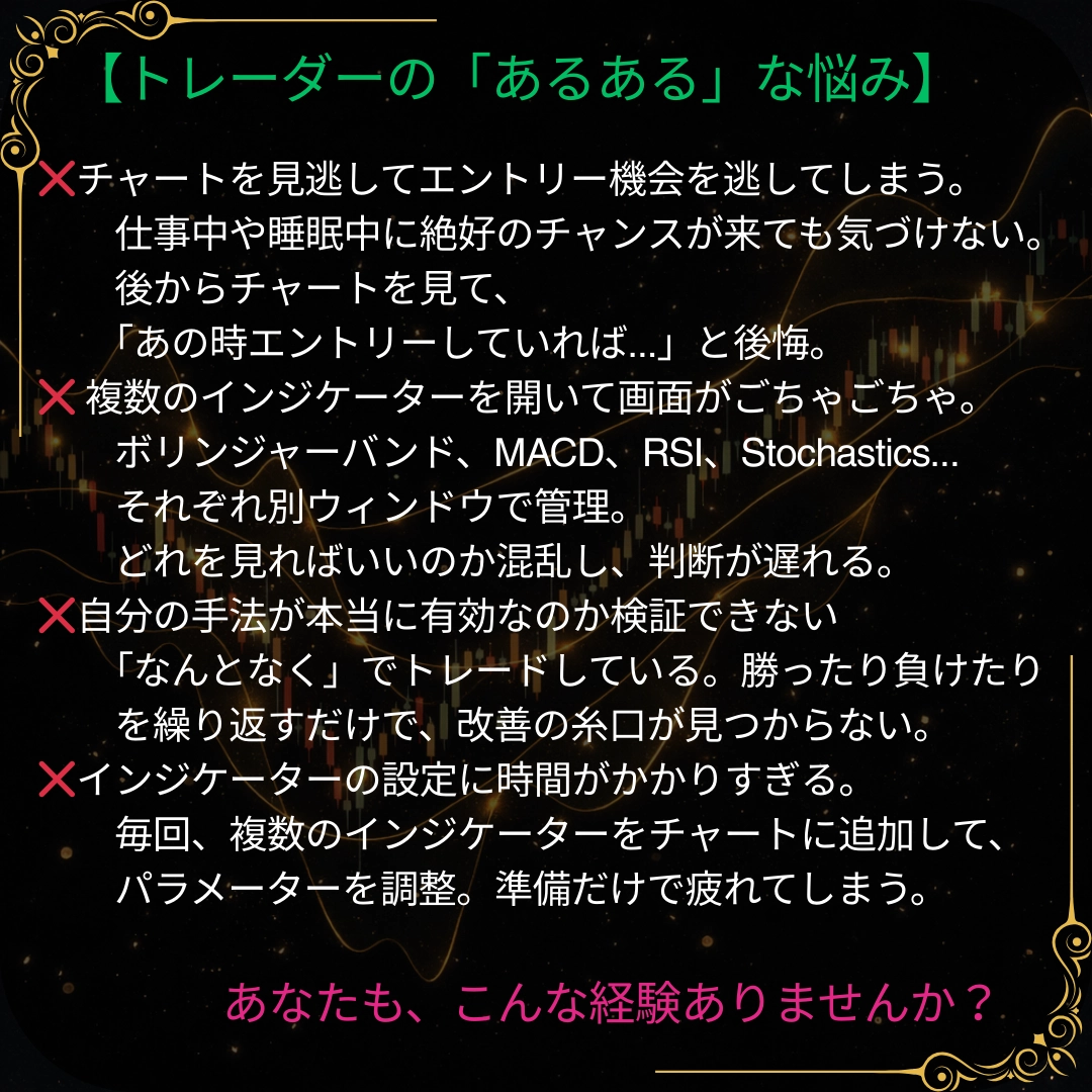 「Entryに自信が無い…」 「チャートを見ていられない…」 「オリジナル手法を考案したい!」