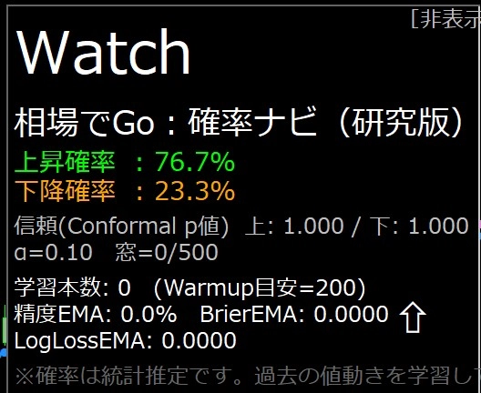 これがパネルの 「上昇確率」 として表示されます。