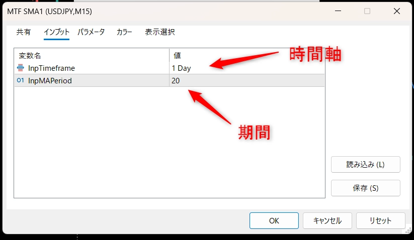 MT5用 マルチタイムフレーム分析 MTF SMA1