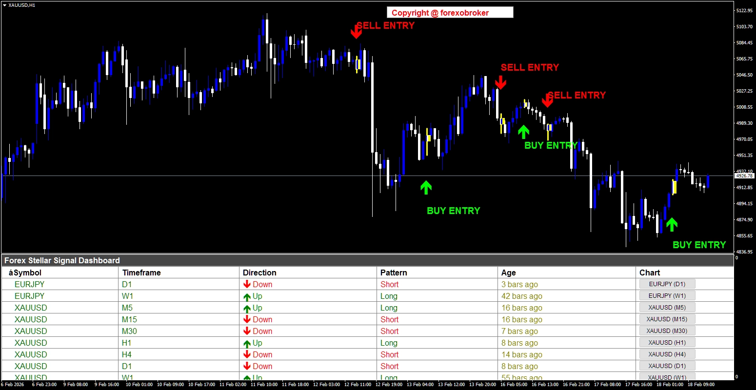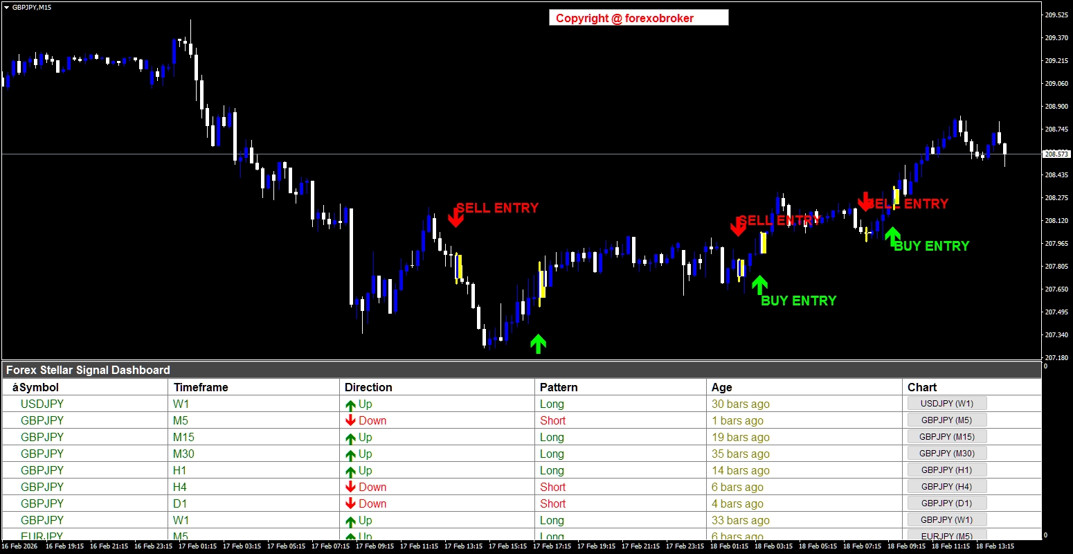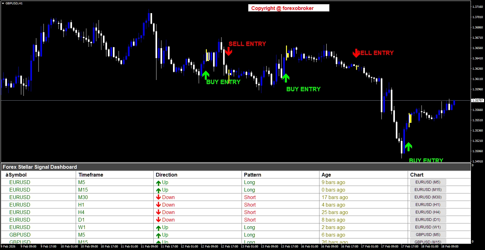 Forex Stellar Signal Dashboardが様々な通貨ペアで高確率のトレードチャンスを検出する例をご覧ください