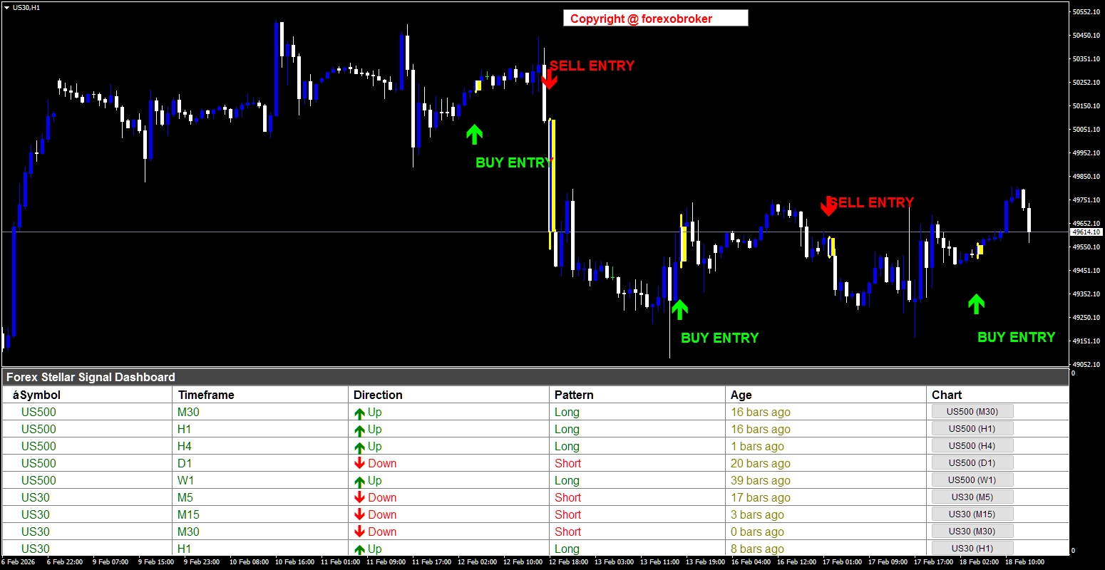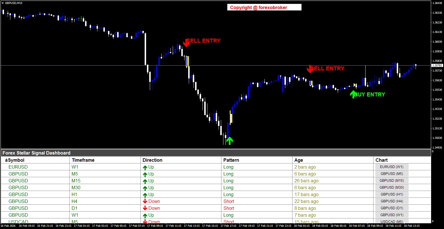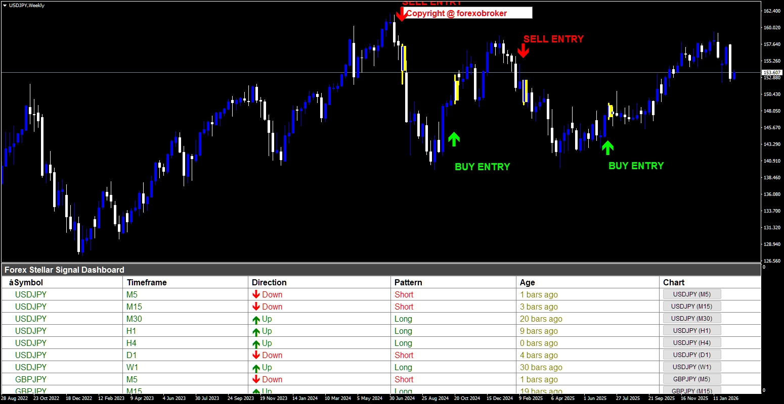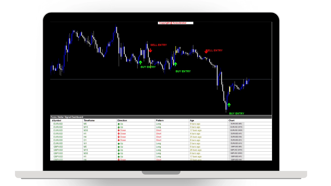 Forex Stellar Signal Dashboardが様々な通貨ペアで高確率のトレードチャンスを検出する例をご覧ください