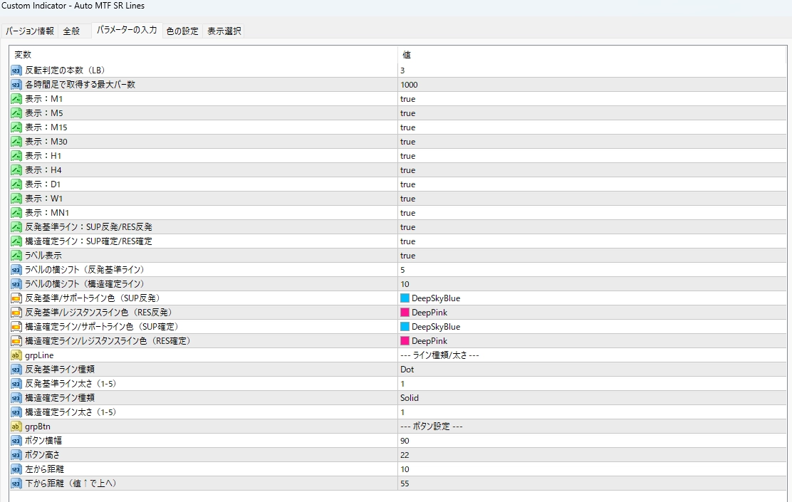上位足のサポレジを、迷わず一瞬で取引画面に描画。マルチタイムフレーム対応(MTF)・サポレジライン自動描画【Auto MTF SR Lines_MT4】 Indicators/E-books