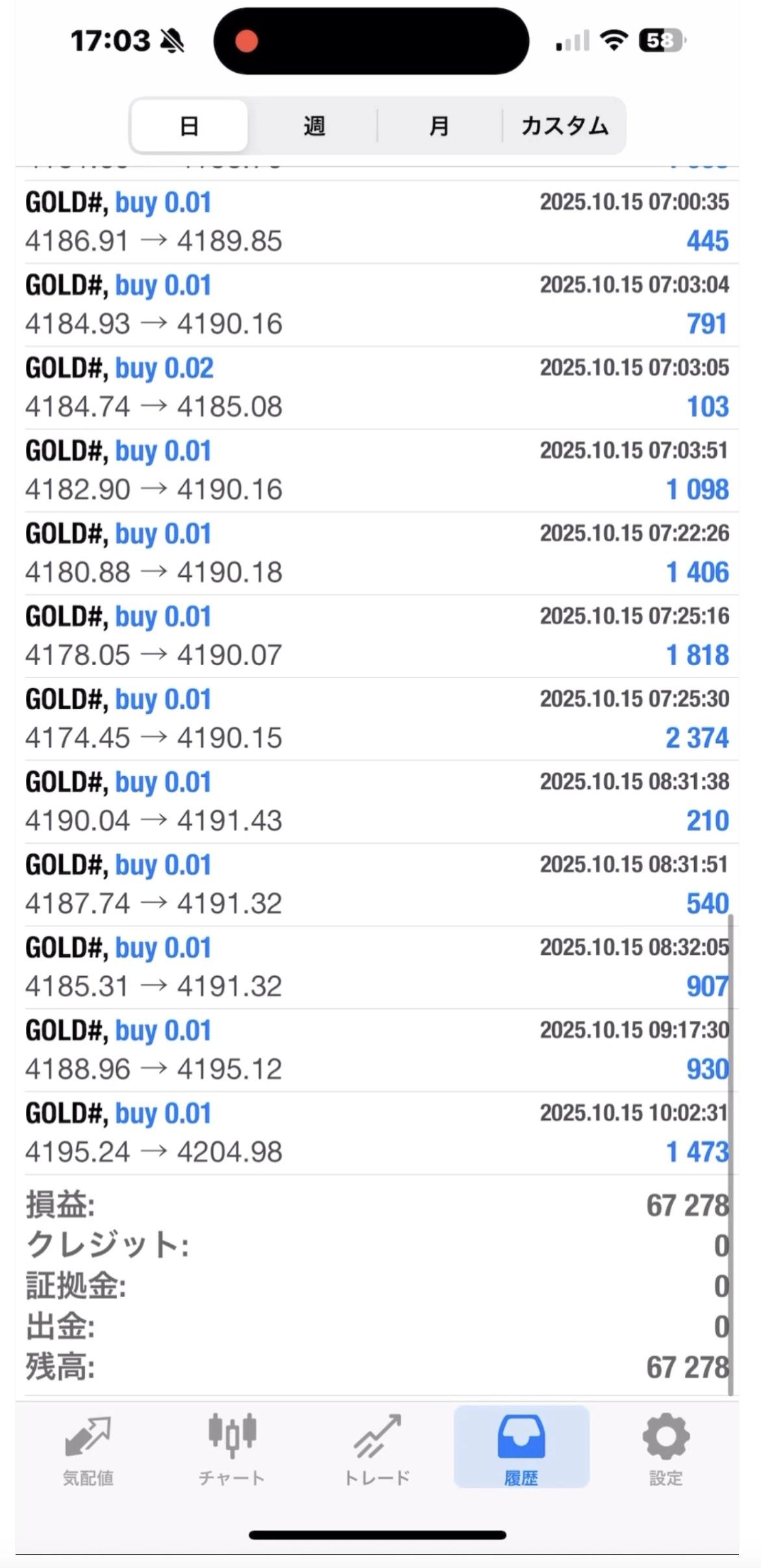 必ず1日5桁を超えるというわけではありませんが、以下他の履歴の一部です。