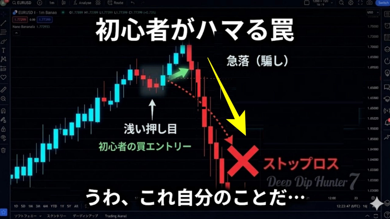 なぜ、あなたの「押し目買い」は勝てないのか? それは、プロの世界では「ここだ!」と初心者が飛びつくポイントこそが、絶好の「カモの罠」だからです。