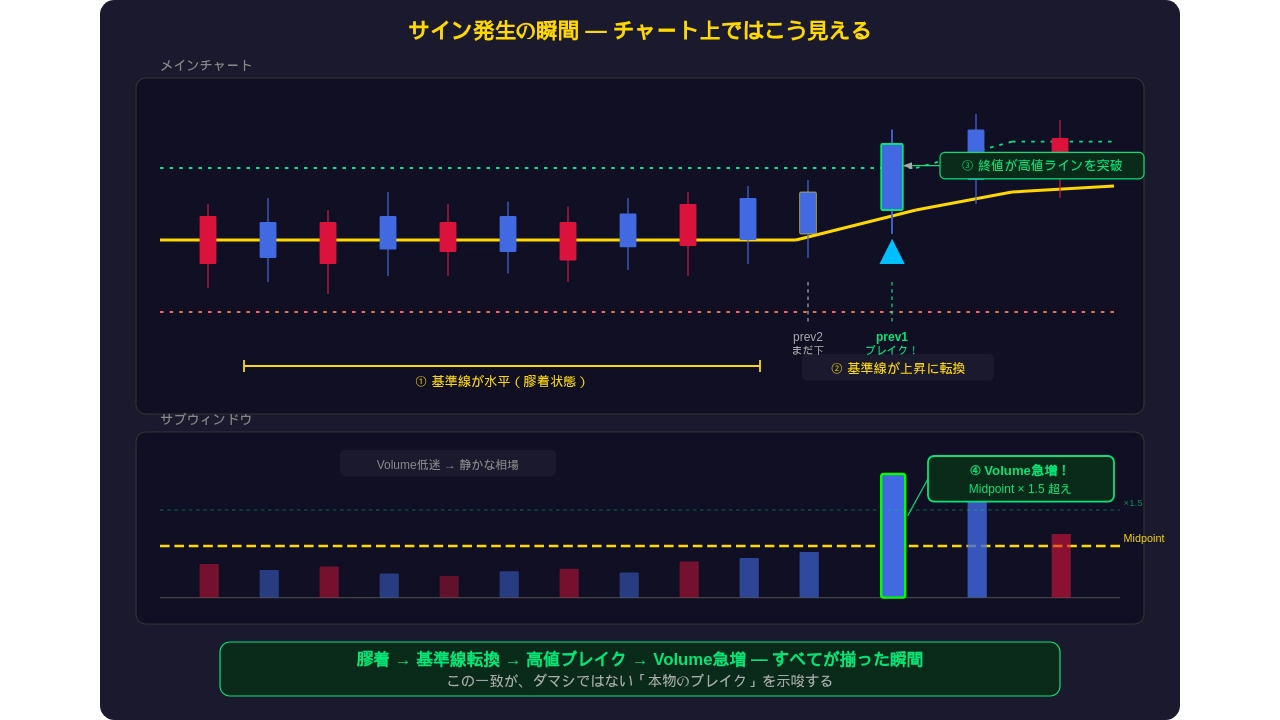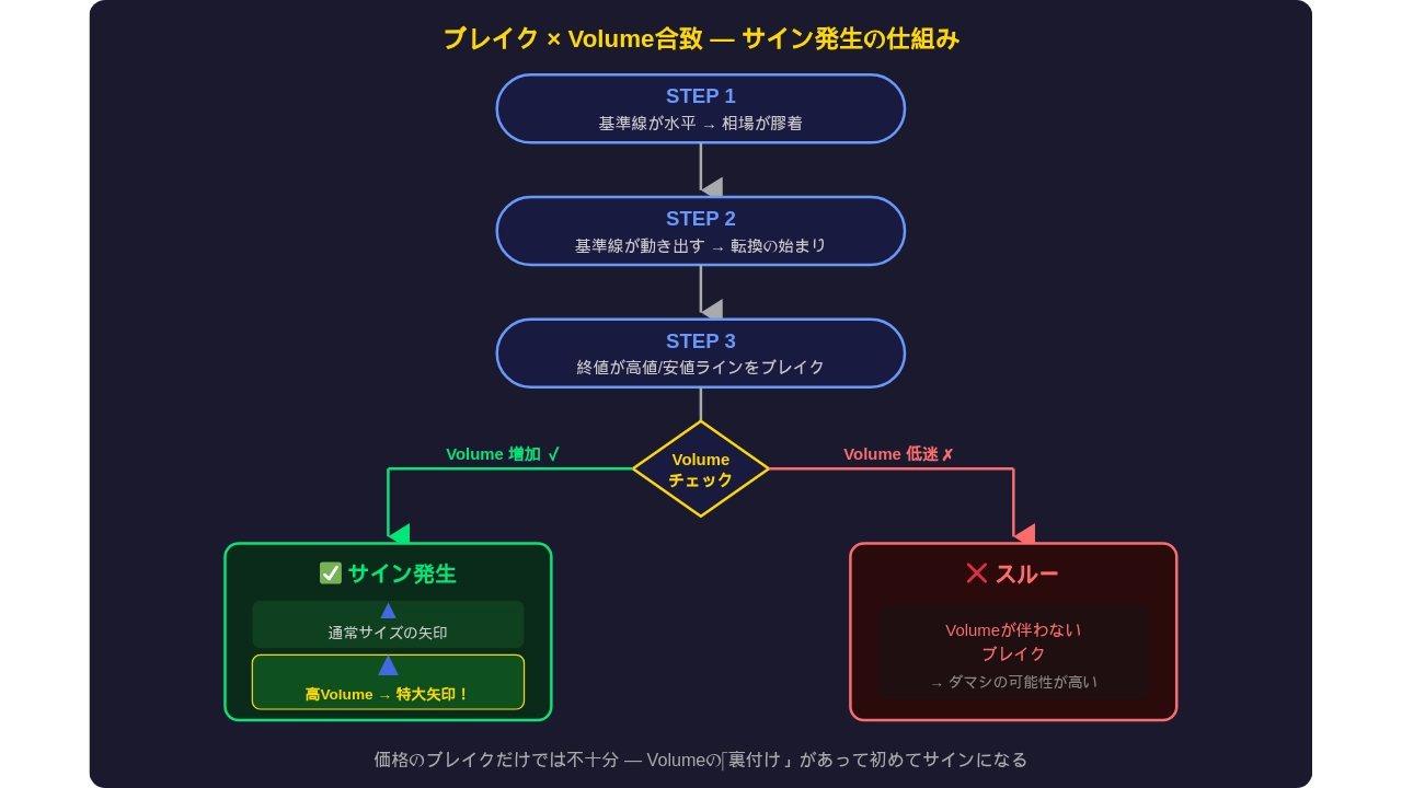 「Volume付きブレイク」だけを選別する。 それがこのインジケーターの設計思想です。