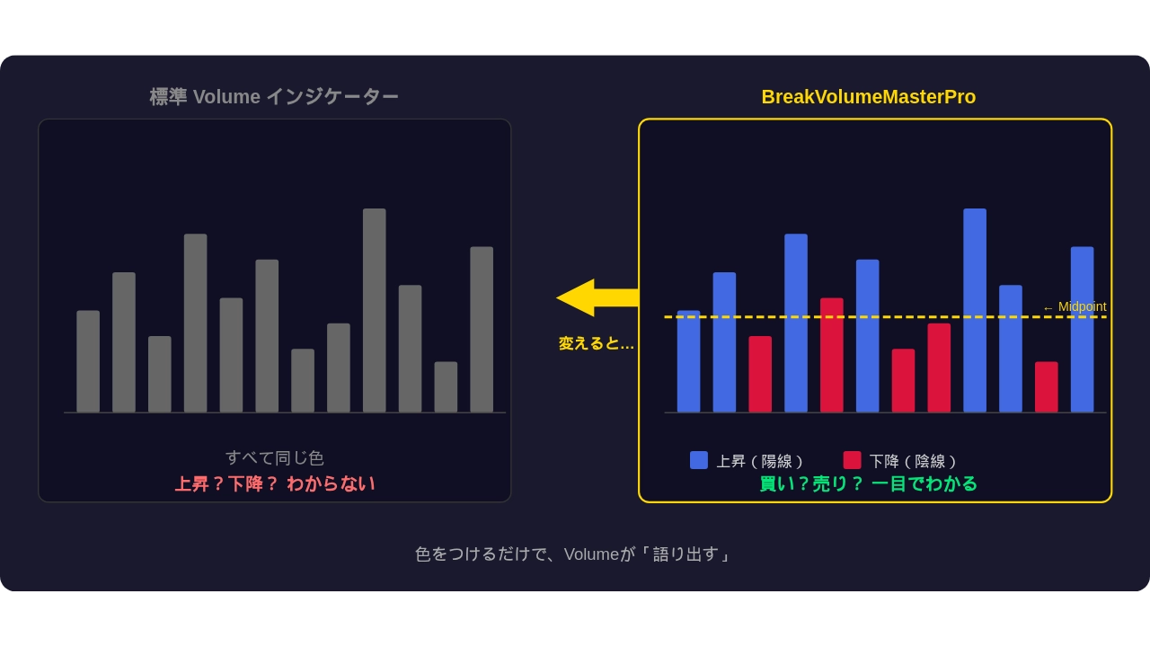 | 📊 BreakVolumeMasterPro(MT4インジケーター) | Volume色分け+ミッドポイント+ブレイクサイン統合インジケーター |
