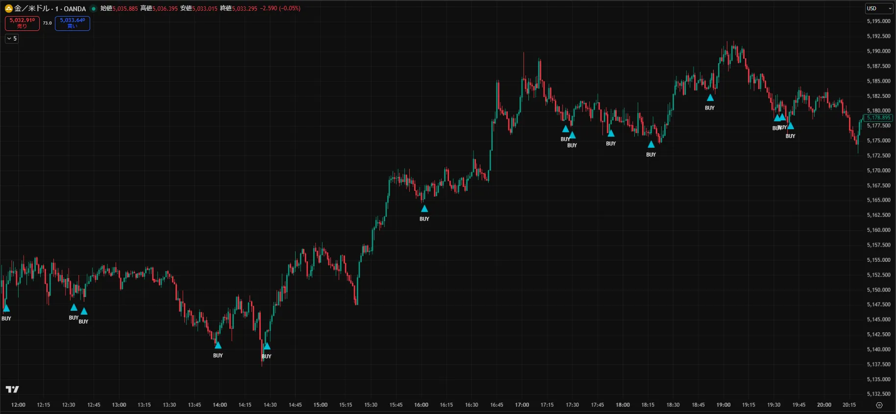 ※こちらは旧「黄金の転換点(ロング版)」のサイン例です。PRO版ではロングに加えてショートサインにも対応しています。