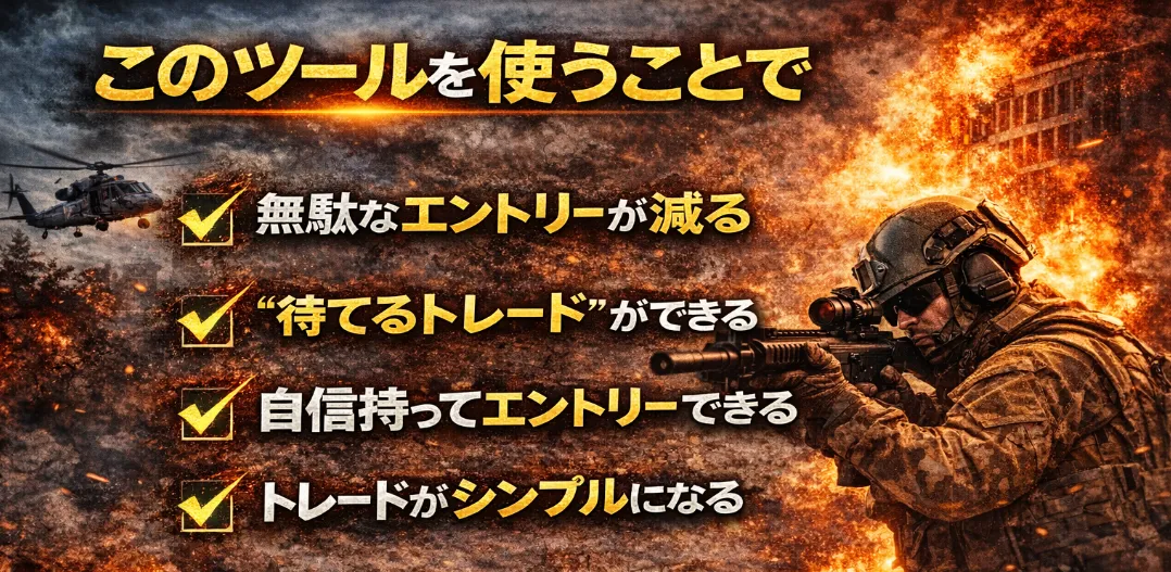 FXトレーダーの夢が今、現実に!リペイントなしで過去も未来も正確にシグナルを提示。相場の転換点を秒単位で予測する驚異のパワーで、一切の無駄なエントリーを排除し、最も利益の出る瞬間を掴み取る!