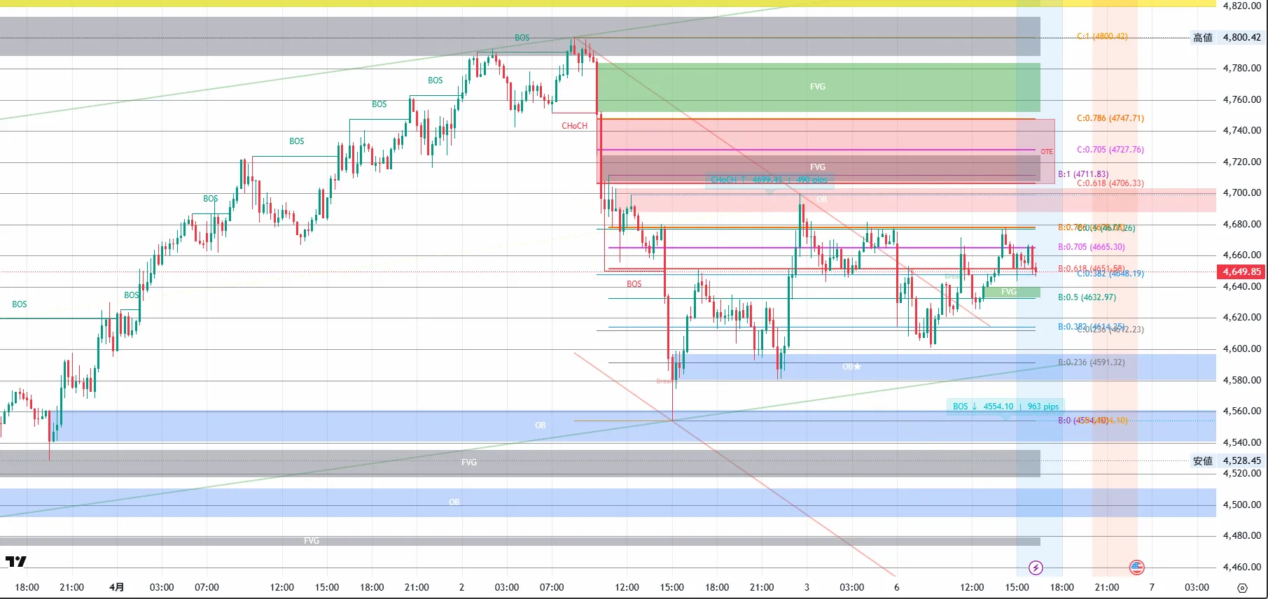 ・OTE / フィボナッチ — 最適エントリーゾーン+フィボラインを自動描画